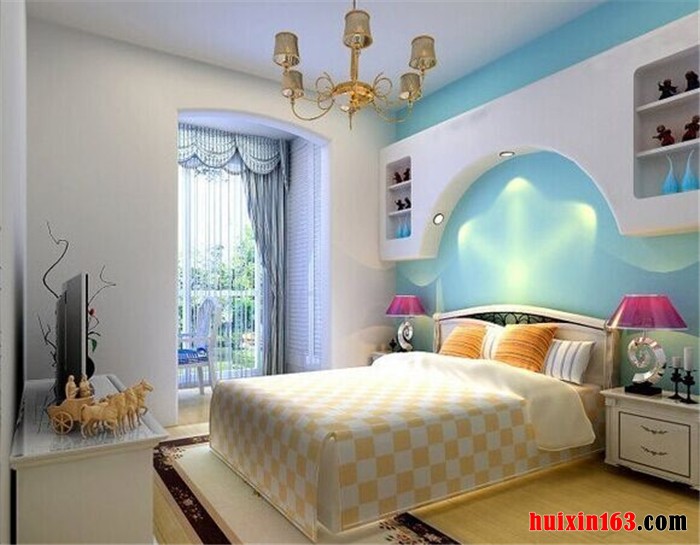 本套房屋装饰风格属于地中海风格,澄澈透明的浅蓝色加上洁净的白色,自然是可以带给人们一种清新感,素净的色彩搭配可以为人们提供一个宁静、舒适的休息空间,客厅中淡蓝色带有花纹图案的壁纸搭配上白色的石膏线条可以将地中海的静谧感全部都展现出来,靠墙而放的一组浅蓝色布艺沙发,使用了柔软的布料,搭配上同一色系的抱枕,更是可以带给人们一种舒适感,中间一款实木材质的茶几,虽然造型简单但其柔美的曲线以及精细的做工更是可以展现出其设计感,地面上并没有选用地板进行铺设,而是使用了具有仿古特色的小地砖,与房间的整体装饰搭配在一起显得更加新颖,可以带给人们一种自然的舒适感。