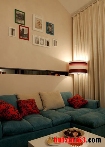 本套房屋的设计风格属于现代简约风格,在所有的家居装修风格中这一风格的装修主要是可以带给人们一种不拘小节的感觉,本套房屋的整体色调是偏向于暖色调的,客厅中摆放了一款蓝色的沙发并搭配摆放了橘色以及米白色的抱枕,柔软的质地与温馨的色调搭配在一起自然会带给人们一种舒适感,茶几中间摆放了一款白色的实木材质茶几,茶几体积小巧也很实用,没有过多的花样设计却更能凸显出个性,非常符合本套房屋装修的主题。沙发背景墙上悬挂了多个相框,可以加入家人的照片,使客厅空间中再添一丝爱意,吊顶上悬挂的水晶吊灯晶莹剔透,在这样素朴的空间内不会显得突兀,反而成为了客厅装饰中的一大亮点。