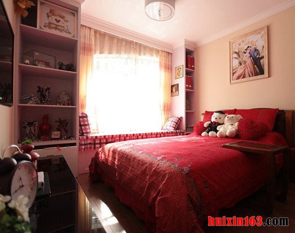 本套案例的设计比较使用与新婚夫妇居住,可以当做婚房,一进到客厅人们首先感觉到的应该就是满满的温馨感,淡黄色的墙壁加上柔和的灯光自然会使客厅空间显得非常温暖,电视背景墙上使用了简单的墙壁贴画做装饰,没有复杂的造型却也能设计出充满个性的墙壁,石膏板吊顶做了别致的造型设计,中间则安装了一盏圆形的吸顶水晶灯饰,水晶吊坠晶莹剔透但并不会让人们感觉到夸张,反而会使客厅空间萌生更多的时尚感,落地窗前悬挂了一套带有碎花图案的窗帘,窗帘由窗纱以及布艺窗帘组合而成,白色的窗纱可以使客厅空间增加一丝朦胧感,而碎花图案的布艺沙发则更是为客厅增添了一份浪漫之意。