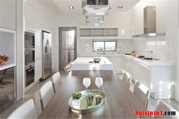 本套房屋的装饰色彩主要是由黑白灰三色组成的,客厅中的主色调以白色为主,一款深灰色的皮质沙发靠窗而放,搭配上同一色系的布艺抱枕,更能突显出此产品的舒适性,中间一款钢化玻璃茶几选用了黑色款式,小巧的体积摆放在客厅中并不显眼,但却突显出了个性,更是为客厅增加了一定的收纳空间,也与本套房屋的装饰风格十分相符,平顶式的石膏板吊顶上没有多余的装饰物品,平顶式的设计也将射灯衬托的更加小巧、别致,电视背景墙则选用了白色的人造石做装饰材料,仿自然纹路的花纹设计更是可以带给人们一种静谧的舒适感,宛若置身于大自然一般,本套房屋的装饰无论是色彩的搭配还是材料的组合都可以透露出业主不喜奢华的生活态度,更符合现代年轻人的装修理念。