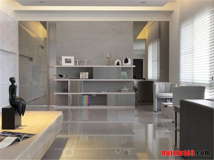 本套房屋的装饰色彩主要是由黑白灰三色组成的,客厅中的主色调以白色为主,一款深灰色的皮质沙发靠窗而放,搭配上同一色系的布艺抱枕,更能突显出此产品的舒适性,中间一款钢化玻璃茶几选用了黑色款式,小巧的体积摆放在客厅中并不显眼,但却突显出了个性,更是为客厅增加了一定的收纳空间,也与本套房屋的装饰风格十分相符,平顶式的石膏板吊顶上没有多余的装饰物品,平顶式的设计也将射灯衬托的更加小巧、别致,电视背景墙则选用了白色的人造石做装饰材料,仿自然纹路的花纹设计更是可以带给人们一种静谧的舒适感,宛若置身于大自然一般,本套房屋的装饰无论是色彩的搭配还是材料的组合都可以透露出业主不喜奢华的生活态度,更符合现代年轻人的装修理念。