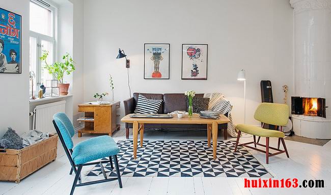 本套房屋装饰中的客厅装饰设计可以充分的表达出本套房屋装修的主题,房屋的主色调是以白色为主,最先映入眼帘的便是地面上的局部地毯,黑白三角块图案的色彩分明,可以带给人们一种强烈的视觉效果,一款黑色的皮质沙发上搭配了条纹形状的布艺抱枕,更加凸显了质感与个性的装饰手法,餐厅中选购了一款圆形的原木材质茶几,天然的木质色彩可以带给人们一种清新感,搭配上一款铁艺的吊灯,更是将个性装饰展现的淋漓尽致,桌面上摆放了一盆新鲜的绿植,不仅可以起到一定的装饰效果,更是餐厅装饰中的点缀色彩,低调的装修风格却可以带给人们一种华美的气度,这便是本套房屋装修的灵魂所在。