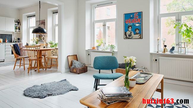 本套房屋装饰中的客厅装饰设计可以充分的表达出本套房屋装修的主题,房屋的主色调是以白色为主,最先映入眼帘的便是地面上的局部地毯,黑白三角块图案的色彩分明,可以带给人们一种强烈的视觉效果,一款黑色的皮质沙发上搭配了条纹形状的布艺抱枕,更加凸显了质感与个性的装饰手法,餐厅中选购了一款圆形的原木材质茶几,天然的木质色彩可以带给人们一种清新感,搭配上一款铁艺的吊灯,更是将个性装饰展现的淋漓尽致,桌面上摆放了一盆新鲜的绿植,不仅可以起到一定的装饰效果,更是餐厅装饰中的点缀色彩,低调的装修风格却可以带给人们一种华美的气度,这便是本套房屋装修的灵魂所在。