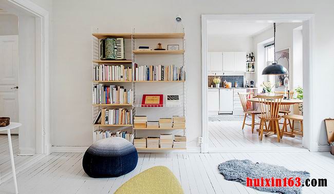 本套房屋装饰中的客厅装饰设计可以充分的表达出本套房屋装修的主题,房屋的主色调是以白色为主,最先映入眼帘的便是地面上的局部地毯,黑白三角块图案的色彩分明,可以带给人们一种强烈的视觉效果,一款黑色的皮质沙发上搭配了条纹形状的布艺抱枕,更加凸显了质感与个性的装饰手法,餐厅中选购了一款圆形的原木材质茶几,天然的木质色彩可以带给人们一种清新感,搭配上一款铁艺的吊灯,更是将个性装饰展现的淋漓尽致,桌面上摆放了一盆新鲜的绿植,不仅可以起到一定的装饰效果,更是餐厅装饰中的点缀色彩,低调的装修风格却可以带给人们一种华美的气度,这便是本套房屋装修的灵魂所在。