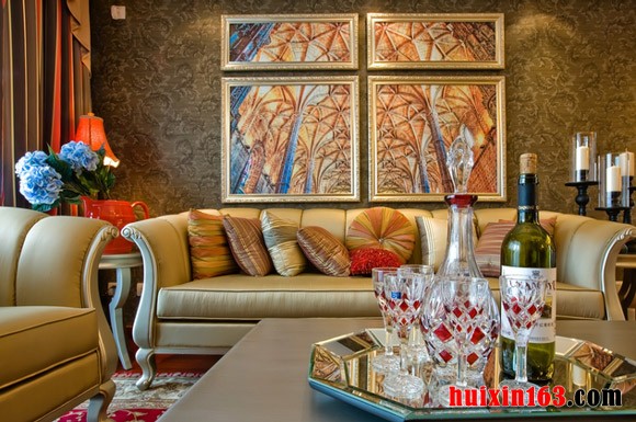 本套房屋的客厅装饰比较具有现代风格,色彩素雅的壁纸装饰着墙壁,暗淡的色彩并不会带给人们一种压抑感,反而是将气氛衬托的更加典雅,一款米白色的皮质沙发靠墙而放,中间则摆放了一款银灰色的茶几,简单、大方的造型搭配上时尚、高雅的色彩更是凸显了本套房屋装饰的主题,地面上则搭配了一款红黄相间的局部地毯,为房屋增添了一丝温馨的氛围,平顶式的石膏板吊顶上没有过于复杂的造型,展现在我们面前的反而是一种大气之势,餐厅中的装饰比较具有时尚色彩,餐桌的边框做了金属圈边处理,搭配上白色皮质的座椅整体搭配使餐厅空间显得更加高雅、靓丽。
