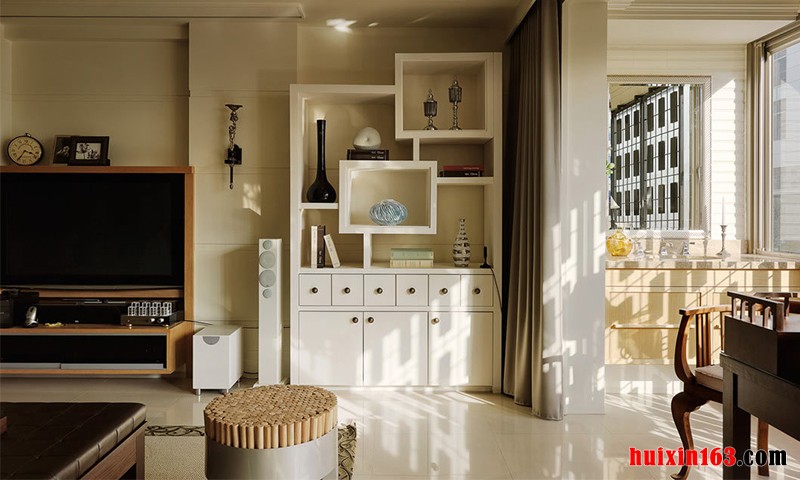 本套房屋的整体装饰风格可以带给人们一种大气的感觉,一进到客厅便会感受到大气之势,客厅中的石膏板吊顶采用了平顶式的设计,中间镶嵌的一盏灯饰形如风扇,非常具有个性,客厅中沙发布局形式则采用了众星捧月式,自后的沙发以及沙发凳将木质茶几围在中间,更能突显出茶几的设计感,茶几上摆放了一株带有淡雅色彩的鲜花,淡淡的绿色可以为房间增添一丝清新感,也是空间内多了一丝芳香之气,卧室中的装饰特点以舒适为主,床头装饰也采用了软包装饰设计,与本套房屋装修风格十分相符,床尾处搭配了一款床尾凳,使卧室装修显得更加时尚,床尾凳的搭配也更加方便、实用。