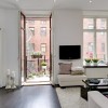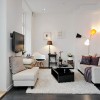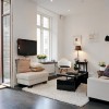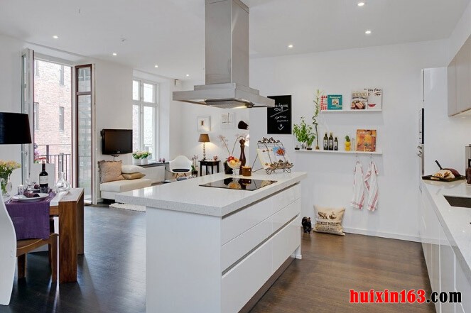 本套房屋装饰的主色彩主要是以白色为主,客厅中的装饰并没有华丽的装饰,主要是以黑白两色为主,一款纯白色的棉质布艺沙发搭配上一款黑色小巧的茶几显得十分具有个性,茶几分为上下两层,这样的设计更加具有实用价值,地面上铺设了一款白色的毛绒地毯,楼可以为客厅空间平添一丝温馨与浪漫之意,本套房屋设计中阳台的的装饰比较吸引人,铁艺的围栏搭配上诸多的绿植鲜花,没有固定的排序,试试随意的摆放、搭配,却可以带给人们一种舒适感,在这样富有浪漫色彩的空间,与客厅黑白相间的色彩搭配形成了鲜明的对比,在阳台的一侧摆放上一套茶几与座椅,便可以在这里惬意的享受午后休息时光。