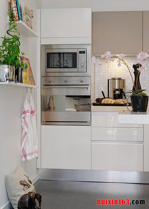 本套房屋装饰的主色彩主要是以白色为主,客厅中的装饰并没有华丽的装饰,主要是以黑白两色为主,一款纯白色的棉质布艺沙发搭配上一款黑色小巧的茶几显得十分具有个性,茶几分为上下两层,这样的设计更加具有实用价值,地面上铺设了一款白色的毛绒地毯,楼可以为客厅空间平添一丝温馨与浪漫之意,本套房屋设计中阳台的的装饰比较吸引人,铁艺的围栏搭配上诸多的绿植鲜花,没有固定的排序,试试随意的摆放、搭配,却可以带给人们一种舒适感,在这样富有浪漫色彩的空间,与客厅黑白相间的色彩搭配形成了鲜明的对比,在阳台的一侧摆放上一套茶几与座椅,便可以在这里惬意的享受午后休息时光。