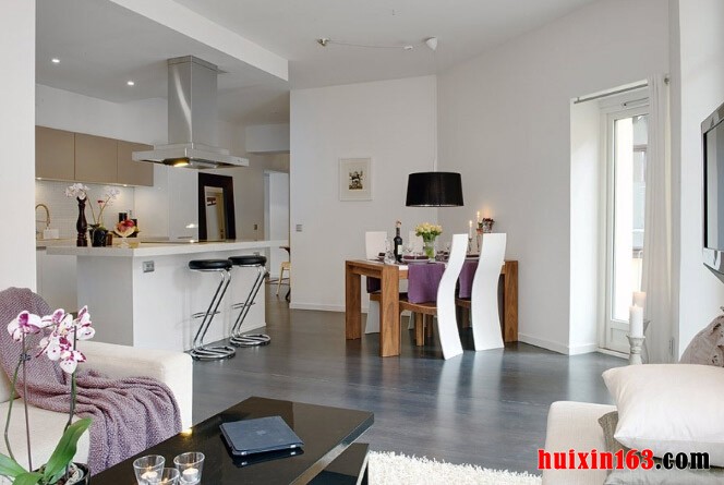 本套房屋装饰的主色彩主要是以白色为主,客厅中的装饰并没有华丽的装饰,主要是以黑白两色为主,一款纯白色的棉质布艺沙发搭配上一款黑色小巧的茶几显得十分具有个性,茶几分为上下两层,这样的设计更加具有实用价值,地面上铺设了一款白色的毛绒地毯,楼可以为客厅空间平添一丝温馨与浪漫之意,本套房屋设计中阳台的的装饰比较吸引人,铁艺的围栏搭配上诸多的绿植鲜花,没有固定的排序,试试随意的摆放、搭配,却可以带给人们一种舒适感,在这样富有浪漫色彩的空间,与客厅黑白相间的色彩搭配形成了鲜明的对比,在阳台的一侧摆放上一套茶几与座椅,便可以在这里惬意的享受午后休息时光。