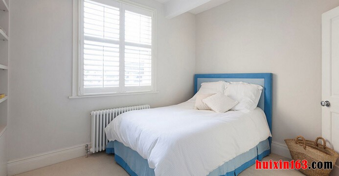 本套房屋装饰的色彩主要是以白色和蓝色为主,客厅中的装饰比较素朴,没有夸张的造型设计,也没有华丽的色彩搭配,白色的空间内没有跟多的点缀,只是靠窗摆放了一款蓝色的毛绒沙发,柔软舒适的沙发上搭配了蓝白相间的布艺抱枕,整体效果可以带给人们一种非常轻松舒适的感觉,沙发中间则摆放了一款白色的小巧茶几,小巧的茶几却可以为客厅空间增加很多的收纳空间,是一款比较实用的家具,沙发一侧的墙壁上做出了书架的设计,可以让业主摆放一些书籍,也可以摆放一些装饰品,增添客厅的装饰也可以使客厅中充满书香的芬芳,与之相对的墙壁上则安装了一面镜面装饰,可以在视觉上起到扩大空间的效果。